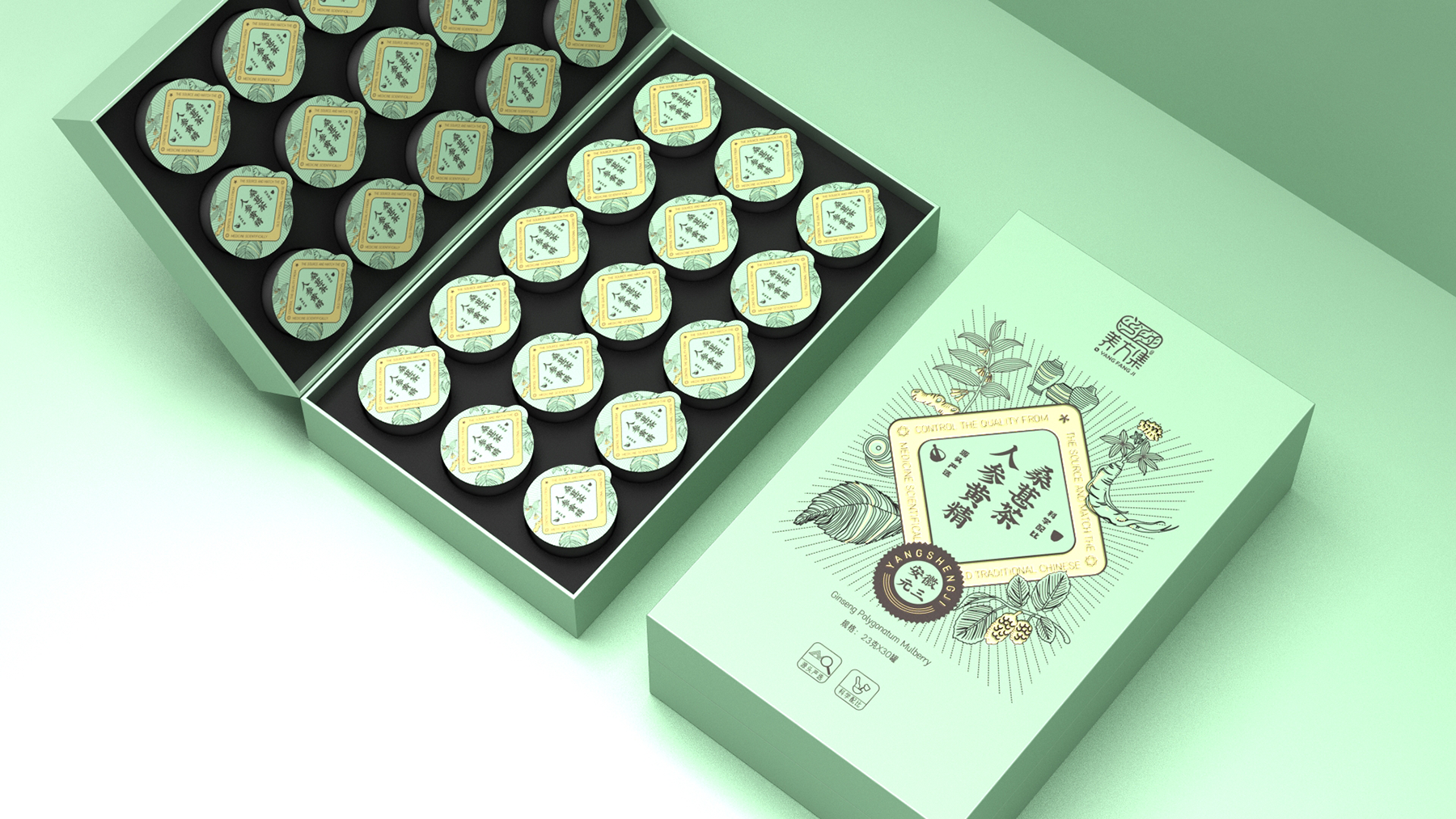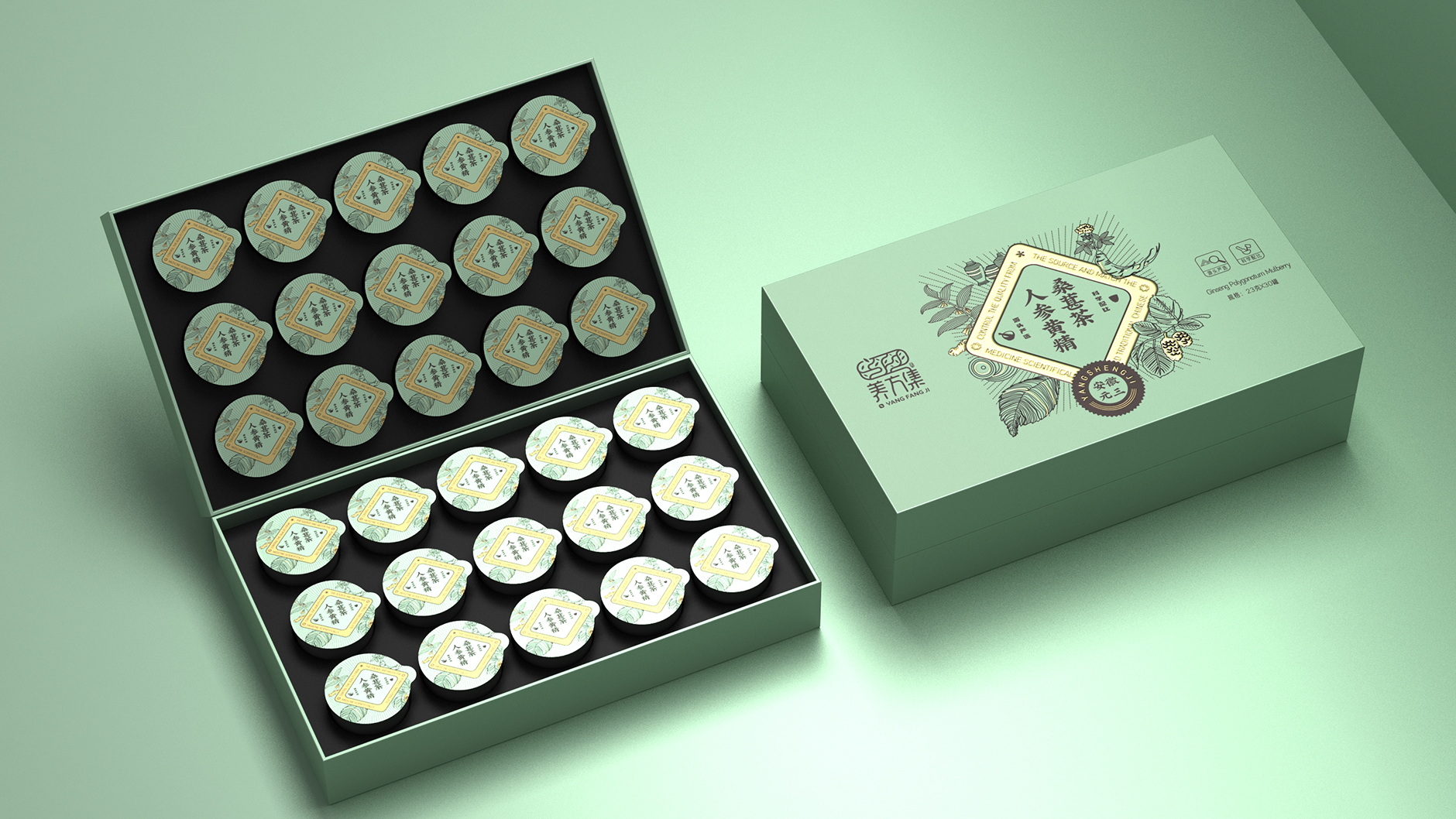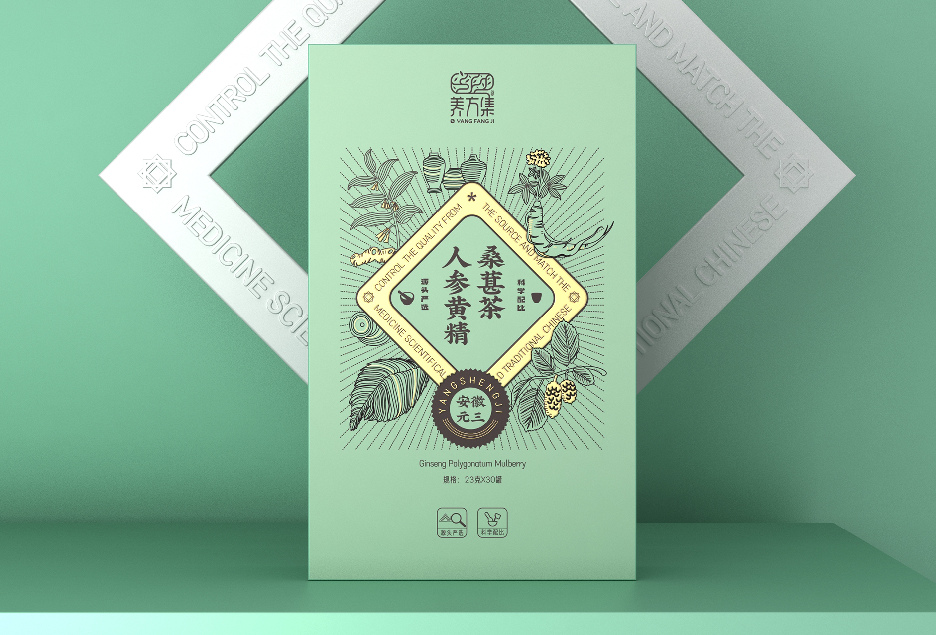 養(yǎng)方集人參黃精桑葚茶包裝定位: