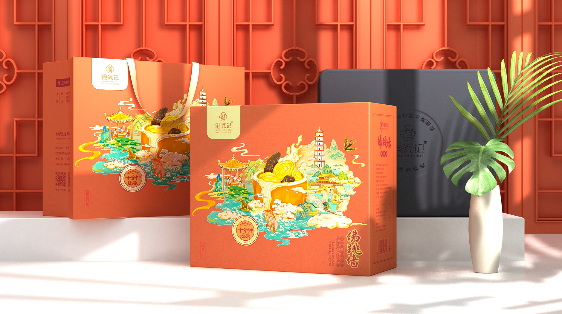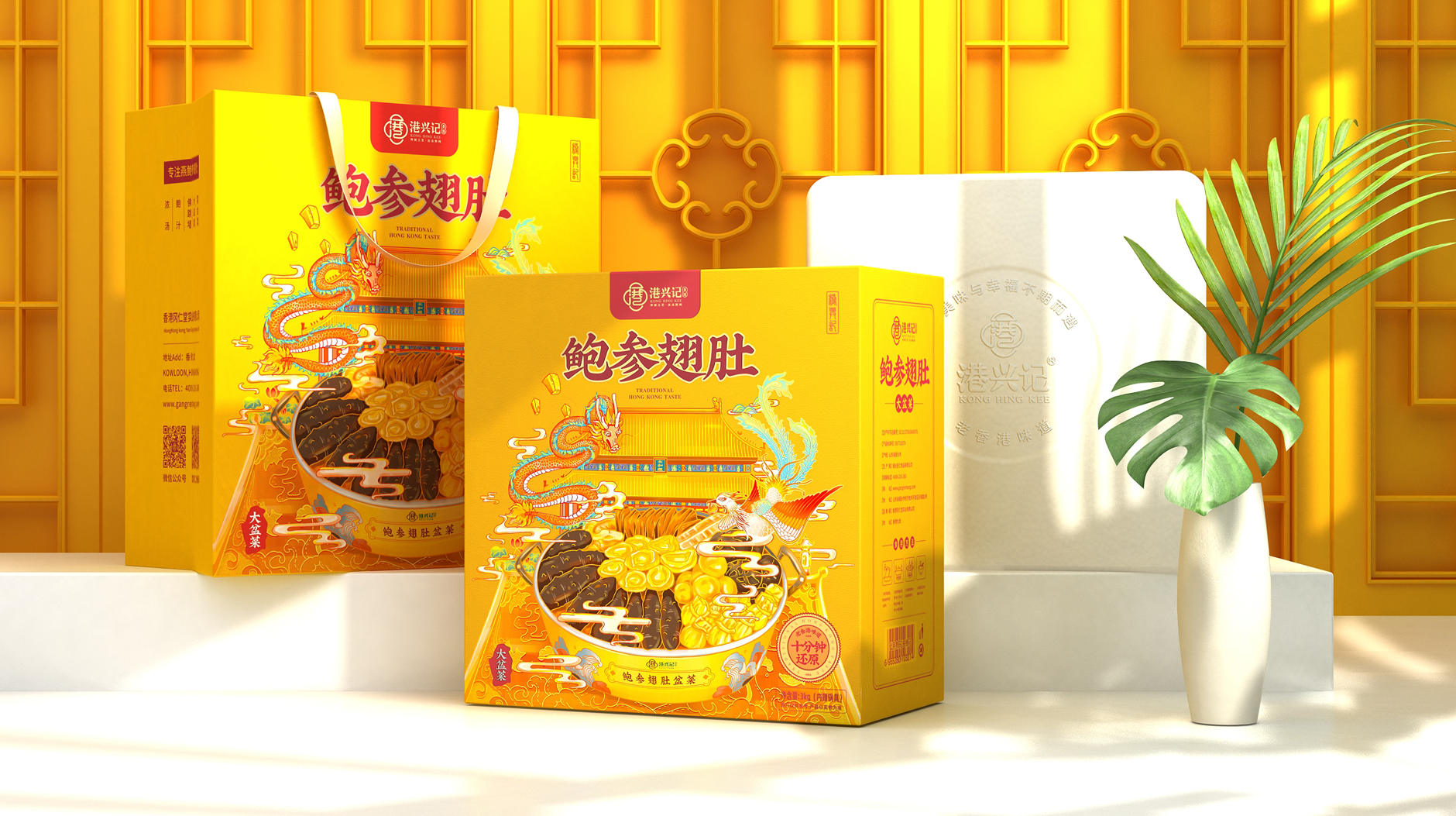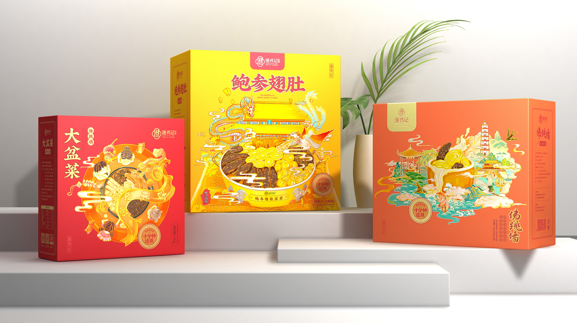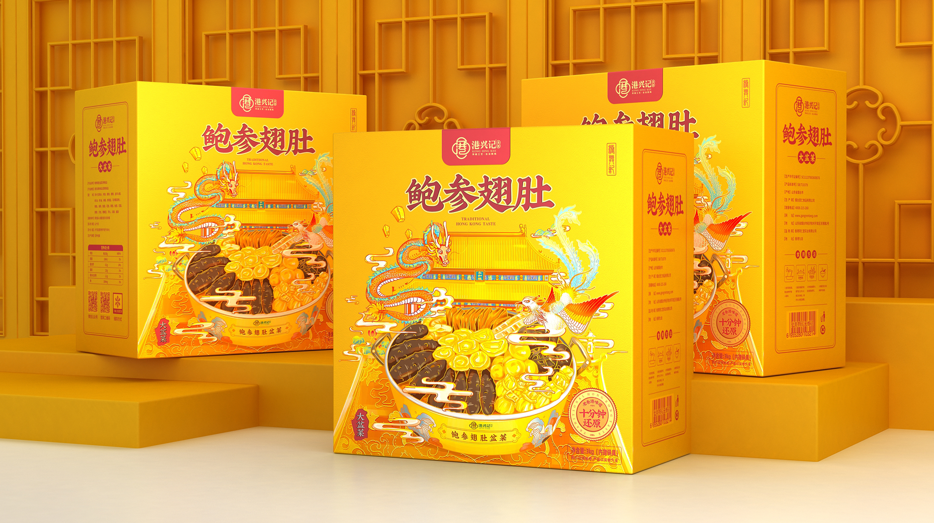 港興記品牌起源于香港的鮑參翅肚佛跳墻的飲食文化,并且致力于傳承老香港味道,讓鮑參翅肚產(chǎn)品走進(jìn)千萬(wàn)家庭,為此我們將產(chǎn)品品質(zhì)和生活品味融入品牌價(jià)值中。用傳統(tǒng)工藝、古法熬燉與現(xiàn)代化生產(chǎn)技術(shù)相結(jié)合,造就高品質(zhì)的鮑參翅肚佛跳墻產(chǎn)品。為適應(yīng)現(xiàn)代人的緊張生活節(jié)奏,港興記品牌開創(chuàng)性的研發(fā)了鮑參翅肚佛跳墻、大盆菜等預(yù)制菜品, 只需要簡(jiǎn)單加熱就能品嘗到媲美酒店出品的美味。