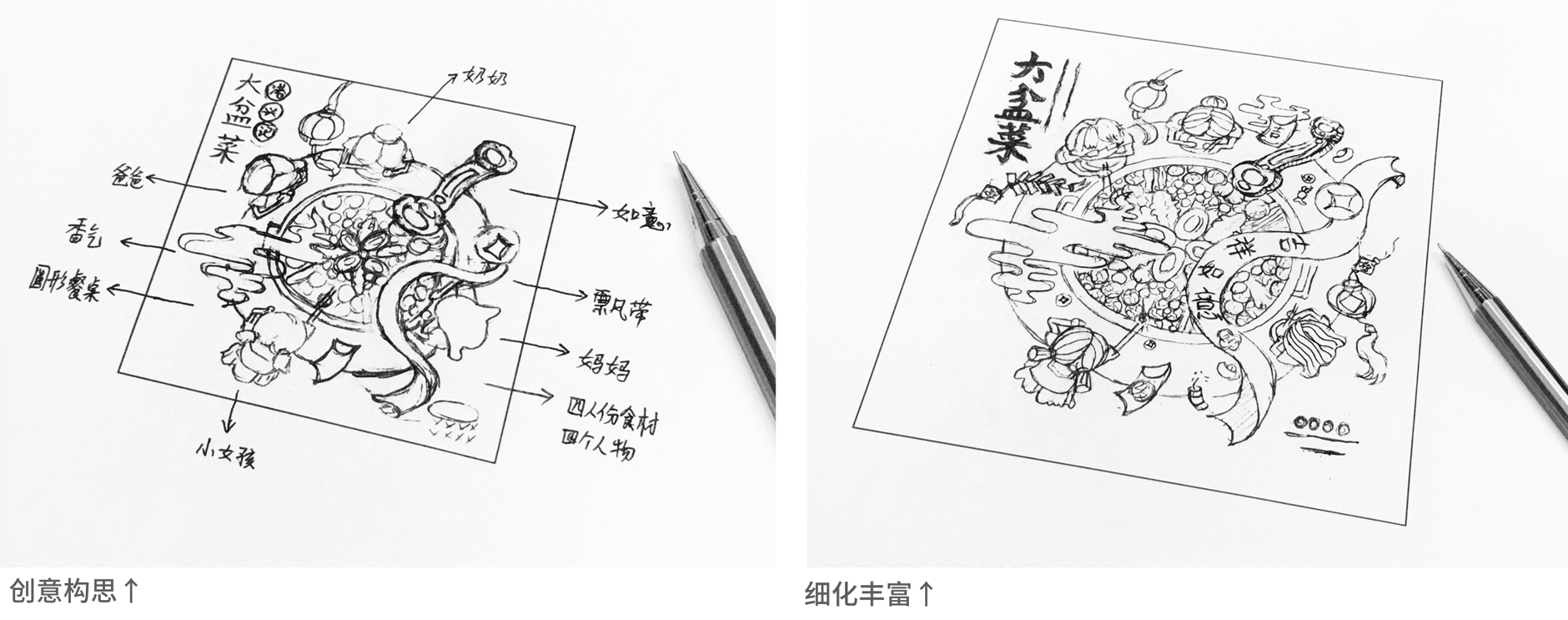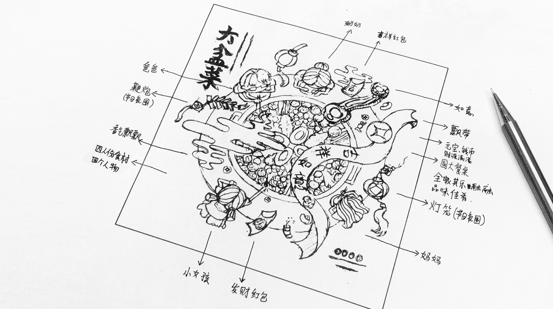 吉祥如意大盆菜插畫創(chuàng)意構(gòu)思