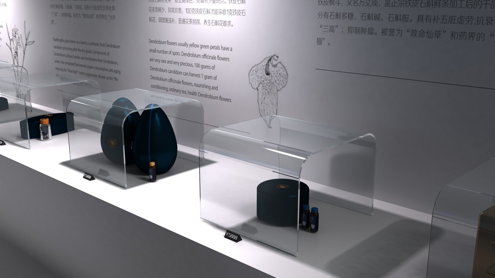 秉承一斛圣“科技健康時(shí)尚極簡(jiǎn)”的品牌氣質(zhì)特征,注重設(shè)計(jì)感,強(qiáng)調(diào)簡(jiǎn)約與尊貴,實(shí)現(xiàn)天然產(chǎn)品氣質(zhì)和現(xiàn)代技術(shù)感的糅合。通過(guò)“大塊面分割”、“流體雕塑”、“一體化”等空間設(shè)計(jì)語(yǔ)言,營(yíng)造出“撲鼻而來(lái)的現(xiàn)代氣息”、“簡(jiǎn)約極致的造型”,從而雕琢出一斛圣品牌獨(dú)特而清晰的店面視覺(jué)印象,賦予一斛圣“鐵皮石斛第一品牌”的品牌氣質(zhì)。